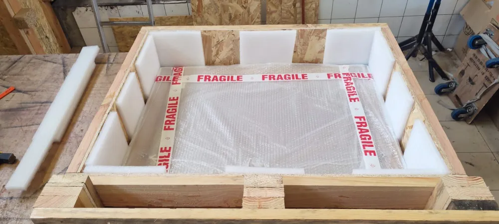 Chez nous, chaque œuvre est soigneusement emballée dans nos caisses certifiées NIMP15, avec des protections internes sur mesure pour garantir qu’elles arrivent intactes.